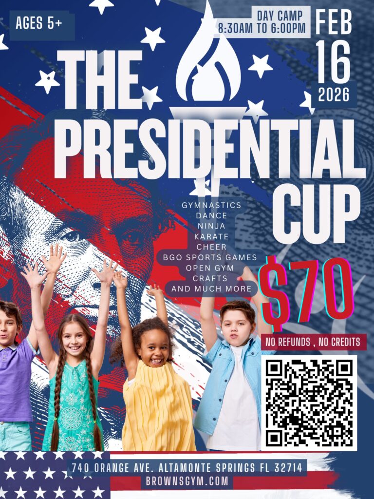 Join us on Monday, February 16, 2026, for our Presidential Cup Day Camp, a full day of excitement for kids ages 5 and up. Camp runs from 8:30 AM to 6:00 PM and is packed with energy-burning fun and skill-building activities.